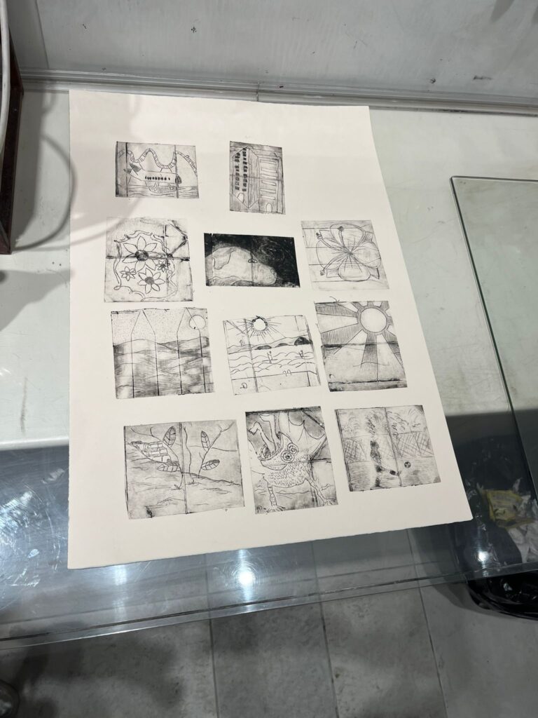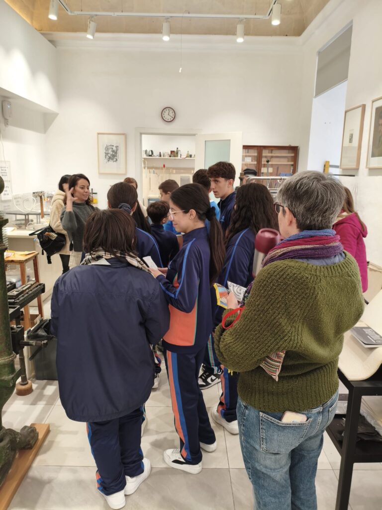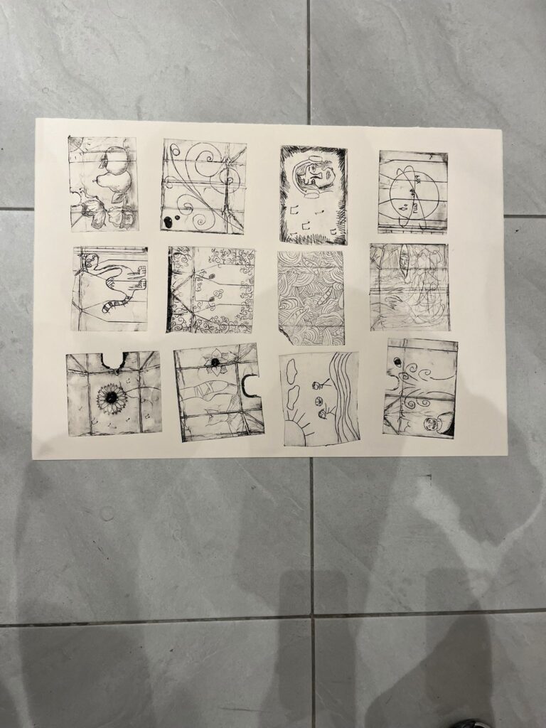 Under the guidance of experienced art educators, they delved into two traditional printmaking techniques: drypoint and monoprint. Working with professional tools and materials, the students continued to experiment with mark-making, texture, and tonal variation—elements central to Goya’s own process. Many found the immediacy of drypoint and the expressive freedom of monoprint to be powerful ways of connecting with the themes they had seen in the exhibition. The workshop not only deepened their understanding of printmaking but also encouraged them to reflect on how art can respond to social and historical events. By combining museum-based learning with studio practice, the initiative bridged art history with creative expression, offering participants a memorable and meaningful artistic experience.